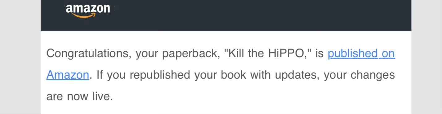 Good news, everyone! Kill the HiPPO is now available to purchase in either Kindle or print format on: